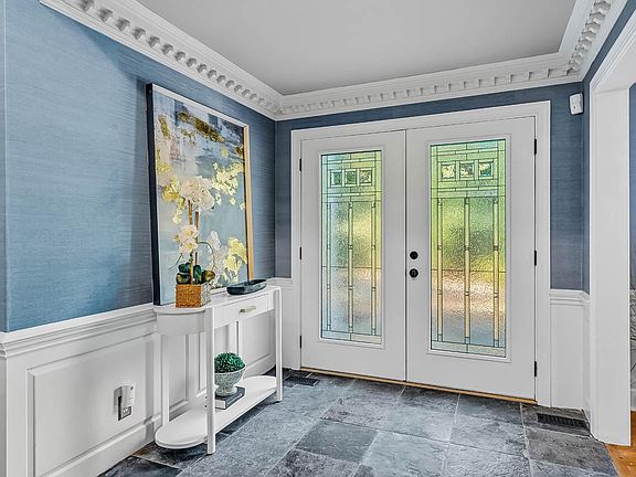 Private in-law suiteCovered front porchSurrounded by treesDedicated officeDentil moldingsExtensive stoneworkGas lanterns