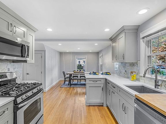 Charming and move-in ready, this single-family home sits on a tree-lined street in a well-loved Watertown neighborhood. Featuring 3 bedrooms and versatile living spaces filled with natural light and charming accents. The inviting living room with fireplace welcomes you in. A separate dining area flows into the modern kitchen with white quartz counters, SS appliances, and breakfast bar - ideal for everyday living and entertaining. A desirable 1st-floor bedroom adds easy options, while a sunny bonus room provides a cozy retreat overlooking the private backyard, ideal flex space for relaxing, home office or a playroom. Upstairs, two bedrooms complete the layout. Highlights include hardwood floors, recessed lights, full basement with potential for expansion, storage shed, irrigation meter and double wide driveway. The fenced yard and patio with TV hookup create a serene outdoor oasis. Close to the Charles River, shopping, and transit, this home is a smart investment for now and the future.