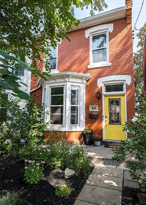 Character and charm overflow in this stunning semi detached 3 bed, 2 bath Victorian home. A delightful English garden welcomes you as you approach the sunny yellow door. Once inside you will immediately feel the warmth and serenity this home offers. Beautifully whimsical wallpaper and original plank flooring greet you in the entranceway. The front bay window lets the light into the tasteful living room with built in shelving, functional electric fireplace and stylish sconces. Glass paned french doors define the space while allowing a perfectly open concept flow into the dining area. Are you ready for this kitchen? Painted original hardwood plank flooring, exposed brick, vintage farmhouse sink and butcher block island blend seamlessly with modern SS appliances including the hidden Bosch dishwasher. Beyond the kitchen you'll find a super practical mudroom with ample storage and a powder room as cute as it is practical. Upstairs you'll find 3 bedrooms, all with large windows and hardwood floors. At the end of the hall is the huge primary bath with double vanity, shower/bath combo, super convenient bedroom level laundry and a generous walk in closet. The skylight lets the sun beam in. In the back you'll find a raised wooden deck with gazebo, perfect for cozy evenings outdoors. Ample backyard space leads to 2 parking spaces off of the back lane - super convenient and a rare find downtown. 52 Emerald St N is a gem. Pun intended.