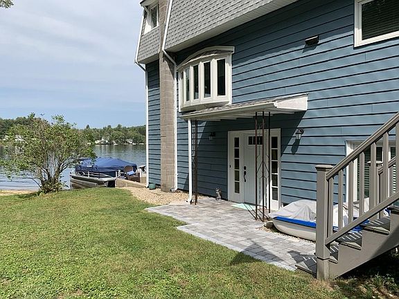 Showings resumed! Beautifully renovated 3 bedroom, 3 bath WATERFRONT retreat on gorgeous White Pond! This home offers stunning views from every level! Main entrance features 3 season porch and updated composite side deck leading to main level of house with new laminate plank flooring, cabinet-packed, fully-applianced kitchen with new granite counters and cozy breakfast nook, spacious updated living room with bay window and picture window with gorgeous water views, a bedroom and full bath! Up the spiral staircase you will find 2 large bedrooms, one with gorgeous water views and one with access to its own 2nd level front screen porch and a full bath. Lower level has in-law potential with a separate entrance, guest room with private full bath and family room with triple slider out to waterfront stone deck area! To top it off this property includes a Generac generator and TWO separate detached garages across the street with a total of 4 bays, loft & work area and access to walking trails!