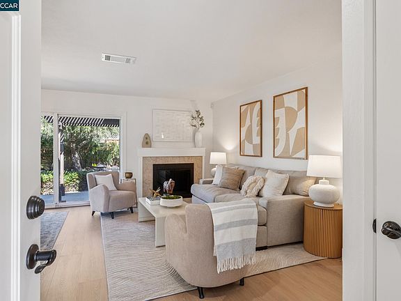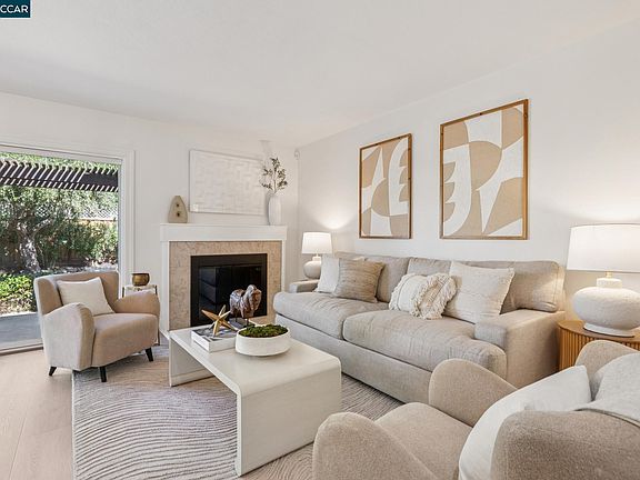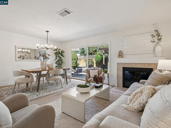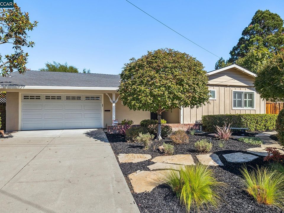 Welcome to this wonderfully updated 2-bedroom, 2-bath single story boasting a two-car garage and prime end of court lot with expansive backyard in the highly desirable 55+ community of Sunny Glen. Charming walkway accented with landscaped grounds leads to front patio and door. Entry opens to the living room, dining room, and kitchen. Living and dining rooms open to one another and feature a sliding patio door to the back-yard– filling the space with sunlight and making indoor/outdoor entertaining flow a breeze. Kitchen features a breakfast bar, slab granite counters, granite backsplash, stainless steel stove, microwave, and sink. Primary suite boasts a walk-in closet and an updated ensuite bath. Secondary bathroom features a single sink vanity and a bathtub. Enjoy outdoor relaxation and entertaining on your expansive, easy care backyard that offers a lush and mature landscaped setting. Fabulous court lot with close proximity to shops, San Ramon Golf Club, and more. Upgrades include dual pane doors and windows, interior doors, lighting, newly installed laminate floors, wide baseboards, and fresh interior paint throughout. Washer and dryer located in spacious two-car garage. HOA fees of $556/annually provide access to the clubhouse, fitness center, and community pool.