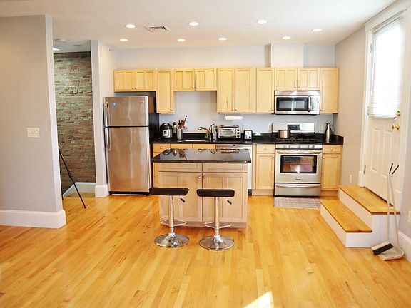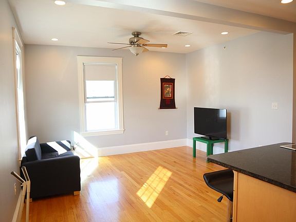 Location, location, location! Only 0.7 mile away from Sullivan Square T station. A good opportunity for living. Modern, sun-filled and well kept, top floor condo. Private hallway entrance with oak stairs and exposed brick, leads to fully applianced kitchen with granite counter tops, island, maple cabinets and recessed lighting. The open floor plan features a light filled living room with hardwood flooring throughout. Large bedroom comes with office nook and bay window directly overlooking Symphony Park and the tree lined street below. Additional features include: A/C, in unit washer/ dryer and basement storage unit. Special attribute: large shared deck with sweeping views across Somerville and Cambridge.Choice location, with easy access to Assembly Row, Union Square, restaurants and local shopping. Public Transportation sweet spot. Tenants will be responsible for water & sewer, gas, electricity and internet if applicable; Street parking.