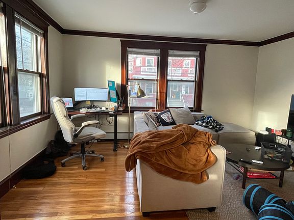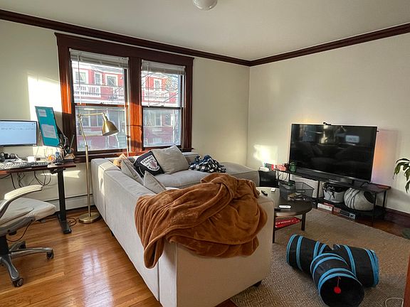 Available September 1st! Bright, flowing five room 2 bedroom (living & dining room) with gleaming hardwood floors and natural woodwork in a great Somerville location just 6 minutes to Davis Square and only 10 minutes to Ball Sq supplying great proximity to both the green and red line MBTA stations. Modern kitchen with gas range and dishwasher. Both rooms are equal sized with ample closet space, front bedroom has a walk out, enclosed porch. One garage parking space included. Property is .4 miles from Davis Sq with Red Line T station, bars, restaurants, and cafes. Super easy access to Cambridge and downtown Boston. One cay may be allowed with landlord permission.