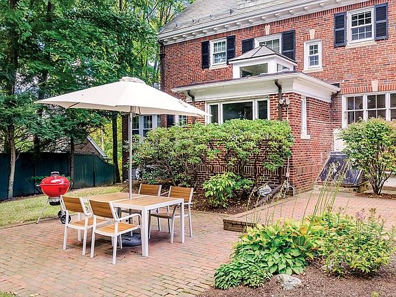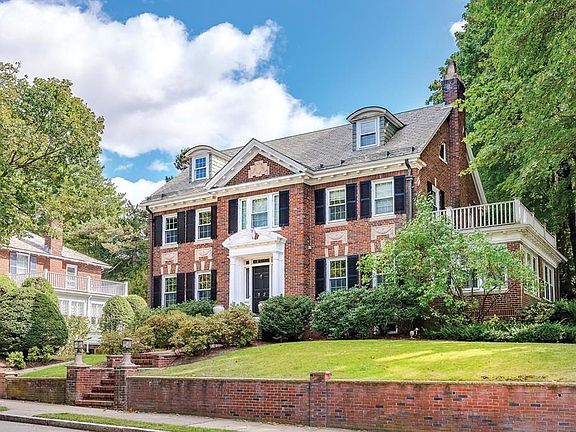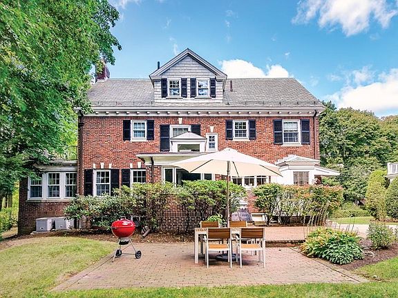 In the heart of Newton Center, '04 renovation of this stately brick Georgian Colonial has impressive curb appeal. From the gracious front entry, enter into to the front-to- back LR w/wood burning fireplace, it is open to the den/office which has walls-of-windows and built-in bookcases. The entertainment sized DR has beautiful wainscoting detail. The cook's kitchen has white cabinets, granite countertops and stainless appliances. The cheerful cupola style eating area, has banquette seating and skylights allowing for beautiful natural light. There are soaring ceilings throughout. 5 generously sized bedrooms in total, 2 of which are on the 3rd floor w/ a full bathroom. The master suite has a luxurious bathroom and a huge custom built walk-in closet. The lower level has a family room, a play area, separate laundry room & half bath. Lovely yard w/ mature plantings and patio space. 2 car garage w/ample storage. Within a short distance to public transit, shops, schools, Mass Pike & Cambridge
