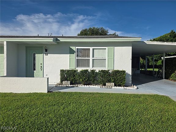 Charming 2-Bedroom Condo in a Well-Maintained 55+ Community Discover comfort and convenience in this impeccably maintained 2-bedroom, 2-bathroom condo located in the sought-after Pinewood Condominiums. Nestled in a 55+ community, this home offers 854 sq. ft. of well-designed living space and is ideally situated near shopping, dining, banking, and entertainment. Enjoy nearby Veteran’s Park and easy access to Fort Myers and its renowned Gulf beaches. Features include an updated laminate wood flooring throughout (installed in 2018), fresh paint, enhanced insulation. The home also offers a gas stove and gas water heater, enclosed lanai, in-residence laundry, and metal storm window shutters. This property has a double driveway with a covered carport. Recent upgrades include a newly installed roof, with exterior maintenance covered by a low monthly HOA fee of just $285. This residence is move-in ready and located outside of a flood zone—offering both peace of mind and value. Schedule your private tour today and experience low-maintenance Florida living at its finest!