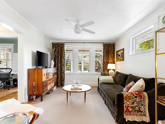You’ll be delighted by the sunlight and condition of this 8-room 3-bed 2-bath condo in the Stratton School District. Tasteful finishes and warm neutral colors create a relaxing and welcoming space, a calming retreat for you and your family. Delightful details include hardwood floors, built-in shelves, dining room hutch, and high ceilings on the main level. The large modern kitchen has stainless appliances, loads of counter space, white cabinets, and access to the back deck. On the main floor are the living room, dining room, office, 2 bedrooms, kitchen, and modern bath; upstairs is a 2-room suite with bedroom, workspace or dressing area, and updated bath with walk-in shower. Unwind on the three-season front porch or opt for al fresco dining on the rear porch overlooking the yard. Deeded parking for 2 cars. Enjoy the beautiful yard and colorful annual plantings, treehouse included! Just a few blocks to the bike path, MBTA bus to Alewife, and indoor skating rink; half mile to Mass Ave.