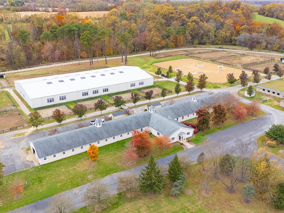 This farm has it all. With 75 stalls available their is plenty of room to grow your business. Main barn has 42 stalls with multiple tack rooms/ feed rooms/ office and bathroom. Don't worry your horse will shine thanks to the hot and cold wash stalls and adjacent grooming stalls. Pool barn offers large stalls, a feed/ tack room. Plenty of wash stalls in the pool room. Yes that is right their is an equine pool to help recovery, as well as a horse gym treadmill.