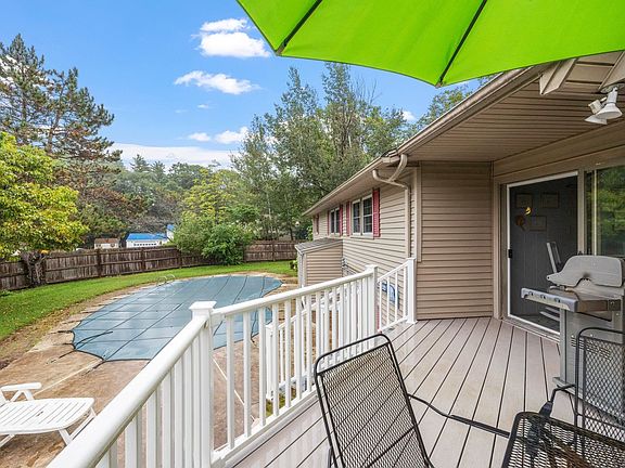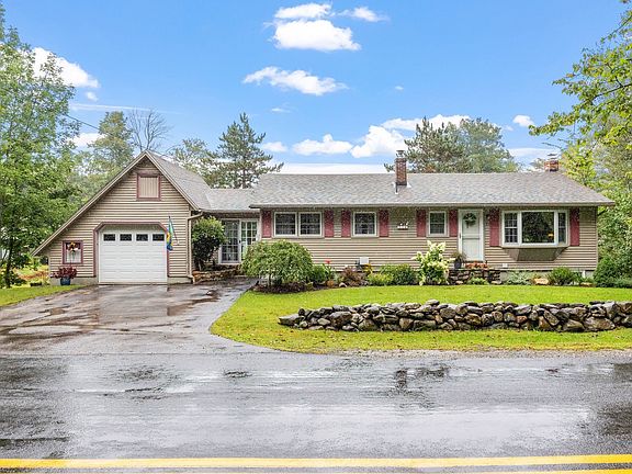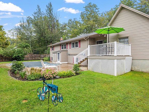 This very nicely maintained ranch offers a tastefully renovated eat-in kitchen with granite counters and island, new cabinets, slate tile floors, glass subway tile backsplash and shining stainless appliances. The main level has 3 bedrooms, hardwood floors, an updated bath and a nice living room with a large bay window. The lower level is perfect for family and guests with a spacious family room with applianced kitchenette and updated bathroom and laundry area. A new barn door leads to a roomy bedroom with loads of windows. Extras include a wood stove with a hearth and newer liner and a Mitsubishi a/c/ heat pump. The tiled breezeway has direct entry to the garage and also out to the newer Trex deck that overlooks a fenced level landscaped lot with a great inground gunite pool for summer fun! The front yard has lovely stone walls and the schools and village fields are just around the corner. The Lakes Region offers so much and all of its great amenities, private town beach on Lake Winnipesaukee, ski slopes, Glendale Town docks and dining and shopping are minutes away. Delayed Showings until Saturday at Open House from 1pm-3pm. Sunday by appointment only.