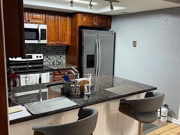 Impeccable!Newer Kitchen with Granite. Open Concept living with Beautiful WB Fireplace.Upgraded flooring, Upgraded Bathrooms.Work station across from Laundry area with built in cabinets.Two bedrooms and two full bathrooms.French door from dining area leads to Four seasons room with two new sliding doors(lifetime warranty) warm and inviting!Upgraded windows and beautiful new front entrance door!Wainscoating and custom molding throughout,ceiling fans,extra lighting,Roof replaced 2023.Seller has loved and maintained this home. Garden is approved.New patio close to main entrance and clubhouse.Come see all Clearbrook has to offer! Refrigerator in garage included