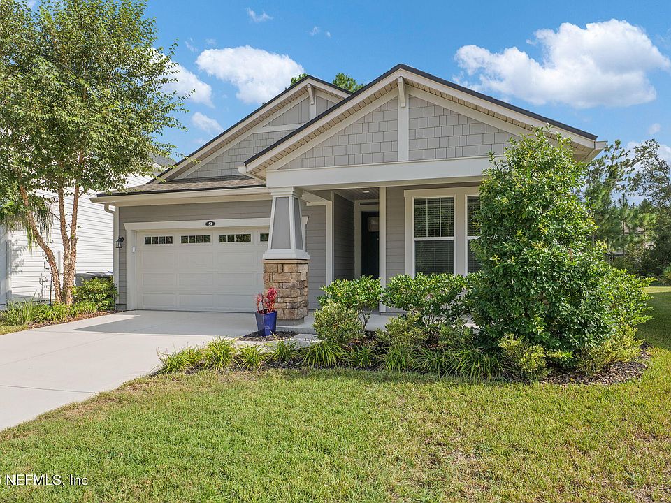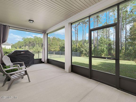 Rivertown Perfection! This like-new 3BR/2BA home, built in 2020, is tucked within one of St. Johns County's most sought-after neighborhoods along the scenic St. Johns River. Thoughtfully designed with an open floor plan, this home makes everyday living and entertaining a breeze. The gourmet kitchen is a showpiece with quartz countertops, timeless subway tile backsplash, stainless steel appliances, large island, and walk-in pantry. A wall of triple sliders seamlessly connects the spacious living area to the screened lanai, offering peaceful wooded views and true indoor/outdoor living. The primary suite is a private retreat with a spa-inspired ensuite featuring a frameless glass walk-in shower, double vanity, and large walk-in closet. A flexible 3rd bedroom with French doors can serve as a dedicated home office or welcoming guest suite. The inviting front porch radiates southern charm, perfect for rocking chairs, morning coffee, or unwinding with neighbors. RiverTown living - is second to none! Residents enjoy a riverfront lifestyle with world-class amenities: two resort-style pools plus lap pool, a lazy river, RiverClub with café and bar, tennis, pickleball and basketball courts, fitness center, dog parks, playgrounds, and nature trails. Take a stroll to the community boardwalk to watch spectacular sunsets, or launch a kayak into the St. Johns River for an afternoon paddle. Golf cart-friendly streets and community eventsincluding lively Food Truck Fridaysmake it easy to connect with neighbors. Families will appreciate access to top-rated St. Johns County schools, including the brand-new Rivertown K-8 Hallows Cove.