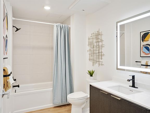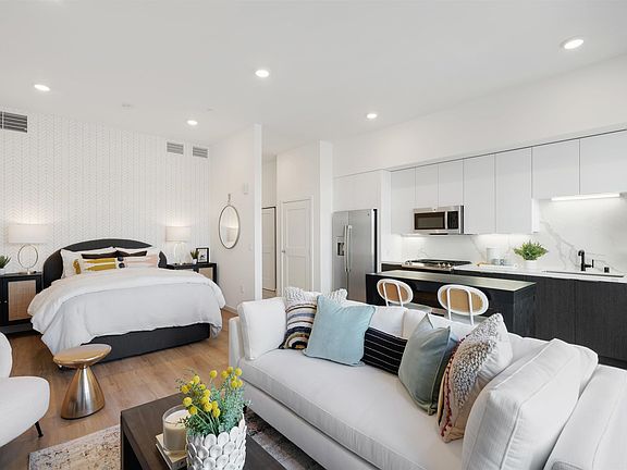 Move-In-Ready New Construction -- Discover the perfect blend of convenience and contemporary living in this single-story, one-bedroom condo. The open floorplan seamlessly connects the living room, kitchen, and dining room, creating an effortless flow that maximizes the interior footprint. The owner's suite offers a tranquil retreat with a cozy bedroom, spacious walk-in closet, and direct access to the semi-en-suite bathroom. Experience the expansive feel of Madison's one-bedroom homes, flooded with natural light from large windows and enhanced by tall ceilings. Elevate your lifestyle with added amenities, including a pet washing station and bicycle storage for every condo. The pavilion beckons with a spacious lounge and fitness center, complemented by a large courtyard boasting inviting outdoor seating areas. Indulge in upgraded features throughout, from the stylish flooring to the quartz counters and modern cabinetry in the kitchen. A stainless-steel GE appliance package, featuring a range, microwave, refrigerator, dishwasher, and washer/dryer, completes the contemporary and functional design. Dive into the immersive experience with images showcasing our model home. Welcome to a residence where spaciousness, comfort, and modern living converge.