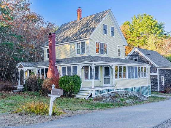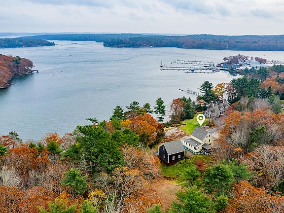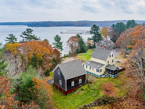 C. 1888 Historic Saltwater Farmhouse — Don't miss this rare opportunity to reside in Robinhood, one of Georgetown's most desirable neighborhoods; just a 5 minute walk to Robinhood Marina & The Osprey Restaurant and a 15 minute drive to Five Islands Lobster Co. and Downtown Bath. This historic home was completely renovated from 2004-2009, benefits from a right-of-way to Riggs Cove allowing tidal water access & features panoramic water views protected by view easements. Enter through the mudroom into the chef's kitchen with custom cherry cabinets, honed granite countertops, farm sink, butcher block island, Wolf oven and hood and Bosch dishwasher. Enjoy the ease of entertaining with open kitchen, dining and living. The sun-drenched living room offers wall-to-wall windows with views of Maine's quintessential rocky coastline. Keep warm in the winter or take the edge off of cool summer days in the sitting room with fireplace. First floor primary suite boasts spacious pass-through closet and split bathroom with skylight, standing shower and heated towel rack. Laundry room off the kitchen offers ample storage space with granite countertops and farm sink for easy clean-up. Savor morning coffee or evening drinks in the screened-in porch. Upstairs, two spacious bedrooms share a full bath with soaking tub. Large unfinished attic space on the third floor provides plenty of storage space with the opportunity for additional living space. Just a stone's throw away you'll find a rustic, seasonal cottage for guests or rental income. The cottage is complete with 3 small bedrooms, 1 bathroom, small kitchen, large living area and a wraparound screened-in porch. Large, two-story barn provides ample storage space for equipment, tools, livestock, and much more. All just 15 minutes to Maine Street Brunswick, 26 minutes to Downtown Wiscasset and 56 minutes to Portland International Jetport (PWM).
