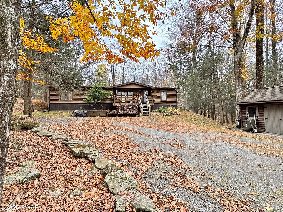 You'll love the space this home offers inside and out! Sitting on 1.34 acres in a quiet country setting, this 3-bedroom, 2-full bath doublewide features an open layout with vaulted ceilings, a cozy living room wood-burning fireplace, spacious eat-in-kitchen, and large primary suite with plenty of room to unwind including a private bath and generous closet space. Outside, relax on the deck or front porch, enjoy the private backyard, and a handy storage shed. The roof is only about four years old, and best of all - this home is affordable, one-level living in a great rural location. Easy access to nearby Prompton State Park for year-round outdoor activities from hiking and mountain biking 26 miles of scenic trails to hunting, disc golf, and fishing the 290 acre lake.