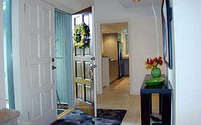 3 BR/3 BA 2-story home has an inviting living room with vaulted ceilings, a wet bar, a fireplace, and floor-to-ceiling windows. The gourmet kitchen is equipped with a large center island, Jenn-Air gas cook top, KitchenAid stainless steel appliances, a warming drawer, wine cooler, and plenty of storage space. The master bedroom suite is on the 2nd floor and includes a beautiful vaulted ceiling with gable window, walk-in closet, make-up counter and a whirlpool tub. Central vacuum, alarm system and ceiling fans. Greenspace on the side and back and easy access to A1A from the north gate.