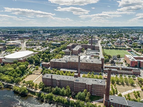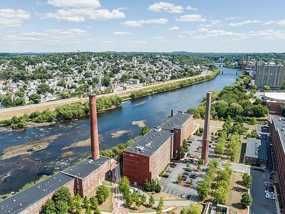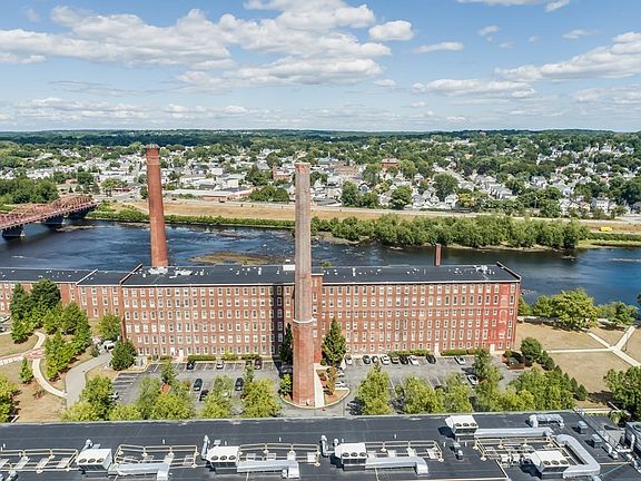 Striking end unit in desirable Renaissance on the River! Riverfront with walking trail running along the river and beautiful outdoor spaces. This restored mill building was converted in 2004 and now offers all the charm of the original mill with the modern amenities today's buyers demand. Common areas include a well-equipped gym, large game room with pool table and large screen tv and entertaining area, enormous clubroom for parties or gatherings. Take the convenient elevator or stairs to this end unit. Dramatic beamed cathedral ceiling'd living room with oversized mill windows bringing in lots of natural light, hardwood floors. Next the kitchen offers plenty of cabinetry, stainless appliances, granite counters and excellent workspace. There are two large bedrooms, the primary bedroom has a walk in closet and full bath with tub and shower. The second bedroom also has a closet and another full bath. All this and downtown Lowell. Museums, the University, restaurants and more!
