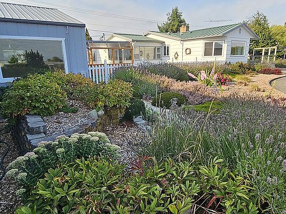 Charmingly remodeled and recently repainted 2171 sq ft country cottage with spectacular Bleimeister cabinets, gas range, vaulted living room ceiling, pellet stove, spacious dining room. Views of Dungeness Spit and Victoria to the North, Olympic Mountains to the South. Walk-in shower and large walk-in closet in Master suite. One bedroom has built-in shelves., separate pantry/laundry room, lifetime metal roof, 1440 sq ft 2 car garage/shop with two additional workrooms, plus 240 sq ft shed with garage door. RV pad with 40 amp electric hook-up. Two Trex decks, one partially covered. Fenced garden area to keep the deer from enjoying the fruits and vegetables – raspberries, strawberries, figs, artichokes, etc. Best micro-climate in the Paradise of Sunny Sequim, just 1/3 mile from the Strait of Juan de Fuca! There is even a white picket fence!