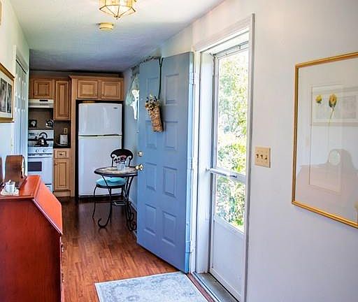 Don't miss this rare opportunity to own a beautiful spacious END UNIT at Liberty Street Townhouse Condos! Conveniently located close to highway, shopping, many restaurants, Nelson Park and splash pad, beach, and historic downtown Plymouth! The kitchen boasts custom maple cabinets, dining offers a wet bar, and opens to a living room complete with wood burning fireplace. Sliders offer access to private deck with garden setting. The walk- out basement offers a separate area for a potential 3rd bedroom, family room, and full bath. The 2nd floor has two large bedrooms and spacious closet. This bright home has been well maintained and is move in ready with fresh paint, and new wall to wall carpet upstairs. This well run complex has a new roof scheduled for this building and newly paved common roadway. Close to everything, yet quiet enough to unwind. The condo makes the perfect home for a small family, or a great downsizing option! Seller is willing to include most furnishings!