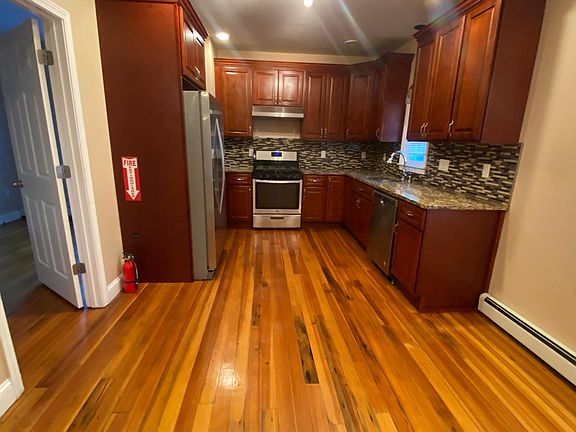 Updated 3-bedroom apartment on the first floor of two family house. Unit features an eat-in kitchen, plenty of cabinets, stainless steel appliances, granite countertops, hardwood floors through, modern bathroom, laundry hookups in the unit, plenty of off-street parking. First month and security deposit required Tenants to pay for one month broker's fee Parking, water included in the rent.