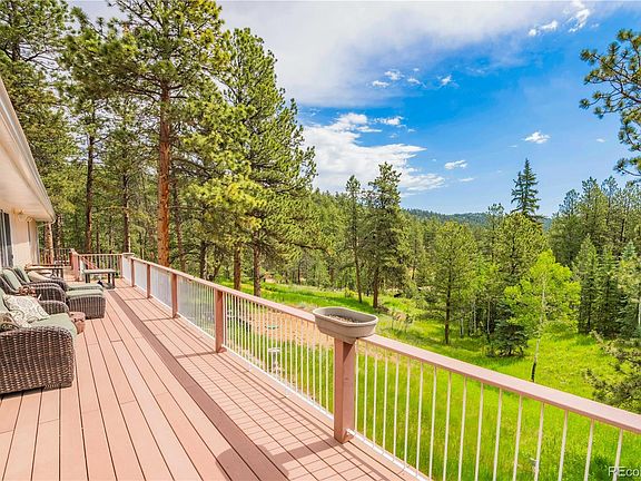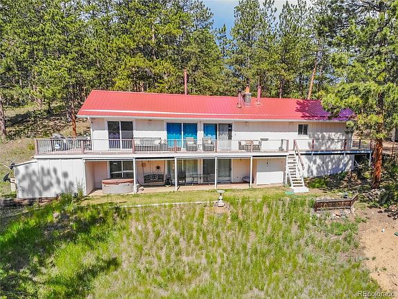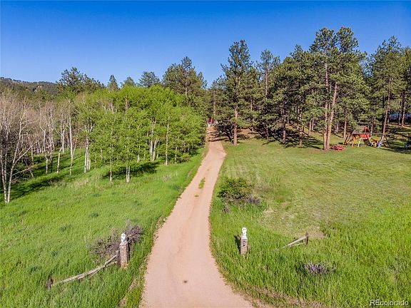 Enjoy the harmonious rustle of aspen leaves in this tranquil mountain estate.  Displaying expansive groves of aspen and pine trees this stunning property will fully immerse you in Park County’s serenity. This 4 bed 2 bath escape to nature rests on 4.69 useable acres of mountain property, maintaining a total of 1,872 Square Feet. Upon entering this home through the mud room, you will find a mountain contemporary environment with soaring ceilings, spacious areas and large windows/doors offering plenty of natural sunlight with access to the deck. Having undergone renovations the interior features updated flooring, bathrooms with illustrious accents, kitchen with full stainless steel appliances, granite counter tops and ample cabinetry. As frigid as the mountain winters can be, there should be no concern for a lack of warmth from the 2 wood stoves, and natural gas heating.  The exterior of this home is armored from the weather with a newer full metal roof and Trex decking. Attached is a semi-spacious chain link dog run perfect for animal lovers. This elegant property boasts its appeal to car enthusiasts and adventurers with its attached 2 car Reznor natural gas heated garage pre-set for air compressor hook-ups, numerous work benches, a central vacuum system, utility sink and 220 volt, as well as its detached 4 vehicle tandem garage built to house an RV/Boat/Trailer equipped with work benches, storage, 110 volt, and an adjacent single vehicle car port. Highline Fiber High Speed Internet is partially completed to the property! Seller currently uses Century link making working from home a possibility for the new home owners. All this conveniently located near hiking & biking trails, fishing, mountain communities and easy access to HWY 285 for commuting to Denver!