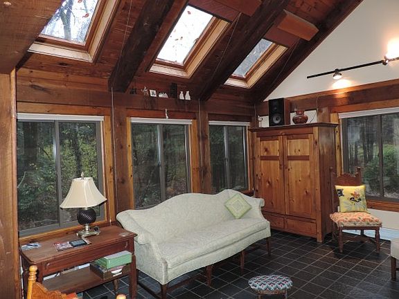A diamond in the woods! Beautiful setting for this 2-3 bedroom open concept home. Spacious Kitchen that opens to the eating area and family room. Cozy up around the wood stove and enjoy nature right out side. 2 car detached garage with screen porch between them. Plenty of storage and built in book shelves throughout the home. If you aree just starting out or downsizing, this is the home for you! Lake Pantanipo is close,Private Beach for local residents and Boating for all residents!