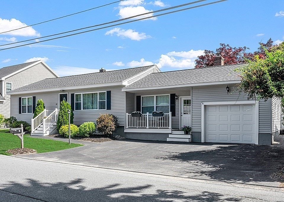 Lovely move-in ready fully-renovated 3-bedroom home with beautiful fenced back yard and garage, and lots of bright windows. Enter at the welcoming farmer's porch to the oversized living room with wood fireplace and pretty mantle. Custom kitchen includes lots of cabinets, center island and stainless appliances overlooking the open concept dining room and living room. Three good-sized bedrooms and tastefully remodeled full bathroom. Attached garage. A flat, grassy fenced back yard with patio and firepit make this a wonderful space to entertain and play. Home was extensively renovated in 2014 including new vinyl insulated windows and exterior doors, vinyl siding, gas furnace, electric panel, bathroom w tile floors, interior finish and doors, custom kitchen, all new laminate wood-look flooring. Roof 2017. Custom blinds throughout. Convenient commuter location, close to highways, shopping, NH, Rail Trail, and beaches. Enjoy a new lifestyle!