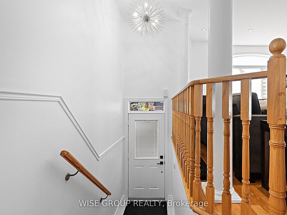 Welcome to this beautifully maintained, 3-bedroom, 4-bathroom townhome with a rare double car garage in the heart of highly sought after Thornhill Woods. With a thoughtful blend of recent upgrades and timeless finishes, this home offers comfort, function, and style for todays modern family. Step inside to a bright living space featuring brand-new custom blinds and a stylish built-in entertainment unit. The renovated kitchen (2019) is the heart of the home, showcasing modern cabinetry, quartz counters, stainless steel appliances, and a walkout to your private backyard with a gas line for BBQ'ing. The upper level offers three bedrooms, including a serene primary suite with ensuite bath and ample closet space. The lower level features a versatile finished basement with recently updated flooring perfect for a family room, home office, or gym. It also offers the potential to be converted into a nanny or in-law suite for added flexibility. Other notable updates include: new siding, new garage door opener, and a freshly re-sealed deck. Located in a family-friendly community close to top-ranked schools, parks, trails, transit, and shopping, this move-in-ready home delivers both lifestyle and convenience.
