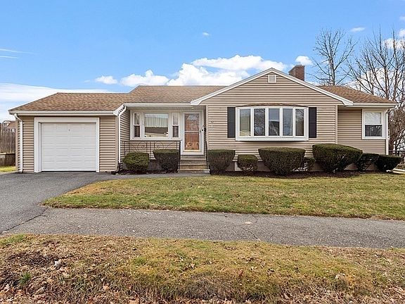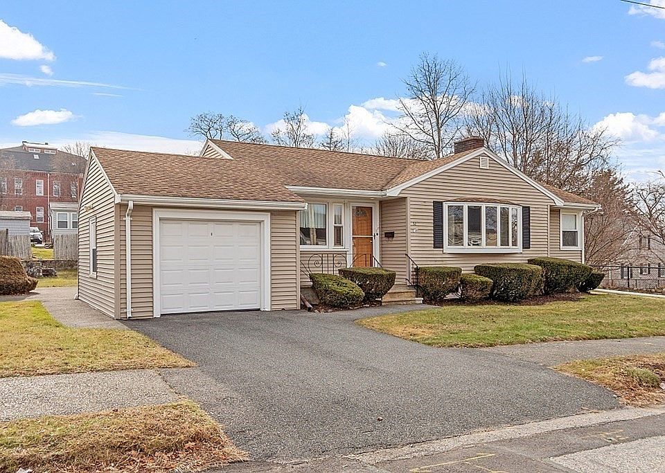 Veteran's Village Ranch - Perfect Layout! Perfect Location! One Floor Living is ideal for just about anyone in this 6 Room Ranch in Veteran's Village cared for by the longtime owners for the past 50 years. Built with Steel Beam Construction. First Floor consists of fireplace living room, dining room, 3 bedrooms, hardwood floors, semi-modern eat-in-kitchen with sun-drenched 3-season porch that overlooks the nice exterior yard. Attached one-car garage plus parking for 2+ cars. The lower level is unfinished with fireplace and 1/4 bath. Close proximity to schools, public transportation, with easy access to Boston. This is your opportunity to bring your vision and personal touches to this property. Don't miss this one to make it your "Home Sweet Home."