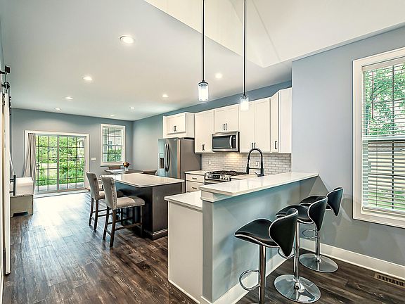 Built in 2022, this stunning 3-bedroom, 2-bath ranch home feels brand new and is move-in ready! With 1,672 square feet of thoughtfully designed living space, it features modern, high-quality finishes throughout—no need for updates or renovations. The charming covered front porch offers a warm welcome and sets the tone for the sophisticated yet inviting interior. Inside, the open floor plan showcases luxury vinyl plank (LVP) flooring, while the great room—with its soaring vaulted ceiling—feels bright and spacious. The gas fireplace adds a cozy, elegant touch, making it perfect for relaxing or entertaining. The kitchen is a chef's dream, featuring quartz countertops, a chic marble subway tile backsplash, stainless steel appliances, and a versatile center island. Two breakfast bar areas create great spaces for casual dining or conversations while cooking. A large walk-in pantry keeps everything organized, and sliding doors from the dining area lead to a covered patio, ideal for morning coffee or evening unwinding. The primary suite is a peaceful retreat, offering double walk-in closets and a spa-like ensuite. The ensuite features a dual-sink quartz vanity, a tiled shower, and a luxurious freestanding soaking tub. Two additional bedrooms are generously sized and share a well-appointed hall bath with quartz countertops, a dual-sink vanity, and a tiled shower. For added convenience, the main floor laundry room includes a built-in sink. The expansive basement, already plumbed for a bathroom, offers endless possibilities for future customization - whether you're imagining extra living space, a home gym, or a recreation room. This home combines the low taxes of Scio Township with access to Ann Arbor's highly sought-after school district. Its prime location puts you close to parks, shopping, and dining. With charm, convenience, and modern luxury, this home is a rare find - don't miss the chance to make it yours!