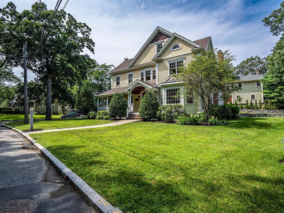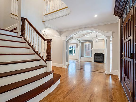 Grand and masterfully crafted, this exceptional residence sits on a private road abutting the Fells conservation land, offering rare privacy and natural surroundings. The spacious home features 6 bedrooms and 6 bathrooms, beginning with a stunning foyer that opens to a sprawling first floor. Sun-filled rooms showcase exquisite custom craftsmanship throughout. The gourmet kitchen is equipped with top-of-the-line appliances and flows seamlessly into generously sized living and entertaining spaces. A private home office with custom built-ins provides the ideal work-from-home setting. Five bedrooms and a convenient laundry room are located on the second floor. The third floor offers a perfect in-law or au pair suite with generous living space, a large bedroom, and a private full bath. The recently finished basement adds approximately 1,400 square feet, including open recreation space, a full bath, and an exercise room.