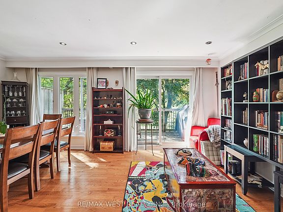 Exceptional opportunity to own a beautiful 3-bedroom executive townhome in the highly sought-after Markland Wood/Centennial Park neighbourhood. Nestled in a rarely offered, well-managed complex, this home backs onto a serene park and ravine, offering privacy and scenic views. Featuring hardwood and ceramic flooring throughout, a spacious living room with walkout to a private deck, and a fully finished basement family room with walkout to a fenced yard perfect for entertaining or relaxing. The primary bedroom boasts a walk-in closet and ensuite. Jacuzzi tub in main bath. Enjoy the convenience of an upgraded kitchen with extended cabinetry, pot lights throughout, and ample storage space. Maintenance-free living with snow removal and landscaping provided by the management. Ideally located close to shopping, public transit, Centennial Park, and top-rated schools.