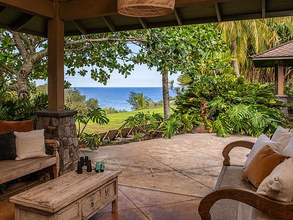 Perched on Maui's north shore, 52 Papio Way Unit A offers a daily spectacle of surf checks from its lanai and panoramic views of the ocean and Haleakala. Nestled in one of the driest parts of Haiku overlooking Maliko Bay, the sprawling estate is a water enthusiast's haven, inviting jet ski adventures and downwinders. As you approach, a palm tree-lined driveway a sense of enchantment reveals this private oasis. Pass through the grand Porte-cochère, the elegant entry point to this contemporary craftsman-style home. The 3,365 square feet main house unfolds seamlessly, featuring three distinctive wings for extreme privacy. The primary suite wing serves as a sanctuary for spa-inspired rejuvenation, with sunset views from the deep soaking tub and an outdoor shower surrounded by rock walls. A second wing accommodates two guest rooms with access to the back lanai, while the third reveals a private in-law suite with a separate entrance, ideal for guests seeking autonomy. The chef's kitchen, with bamboo countertops and an oversized island, opens to a courtyard adorned with a large herb garden—a tranquil space for outdoor dining. Secured by a gated entrance, residential CPR Unit A encompasses nearly two acres of flat, level land surrounded by lush landscaping and an orchard paradise boasting over 18 fruit-producing trees. Bordering Maliko Gulch, the property ensures additional privacy for its discerning residents. Maliko Bay Subdivision, the closest neighborhood to Ho'okipa Beach Park, is less than five minutes away from Haiku's amenities. This residence not only embraces the epitome of Maui living but also provides a retreat into tranquility. Immerse yourself in the luxury of this waterman's dream, where indoor and outdoor living converge seamlessly on the north shore of Maui.