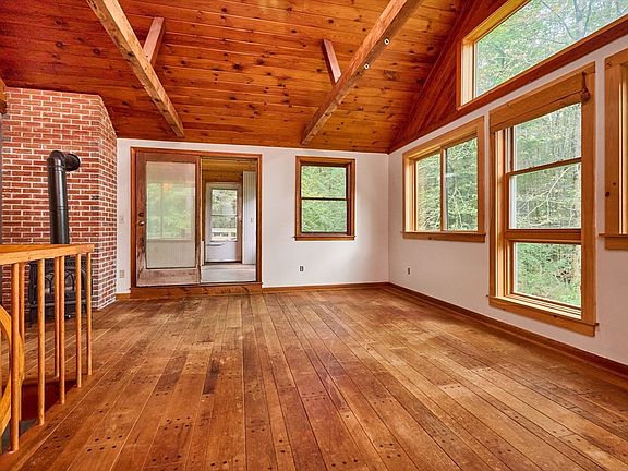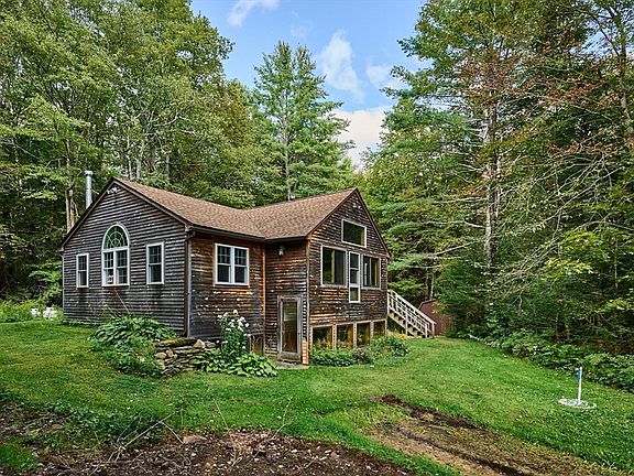 Nestled on 2.27 wooded acres with a peaceful brook, this 3-bedroom, 1-bath home offers a unique blend of comfort and efficiency. Built with a bermed design and passive solar features, it’s thoughtfully designed to help keep energy costs low. An efficient wood stove in the lower level can warm the entire home, while a second wood stove, a gas stove, and electric baseboard heat provide plenty of cozy options. The spacious kitchen is the heart of the home, offering abundant storage and a large island with seating, perfect for gathering with family or friends. Flexible living spaces give you room to shape the home around your lifestyle, whether that means a home office, playroom, or cozy retreat. Just a short drive to Route 112 for an easy commute, you’ll love coming home to relax and enjoy the beauty of nature all around you. New well, electrical panel & septic tank to be installed prior to closing. Roof 2015.
