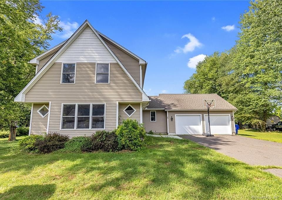 Built in 2003 by Letourneau brothers. This colonial has a total of 1798sf designed with an open concept kitchen, dining and living room, and tons of natural light. Second floor has the main suite and a full bathroom, two additional bedrooms plus a full bathroom. Basement is partially finished, gas heat, central air, public water and sewer. The property also has a separate heated 4 car garage by the road, built on .17 acre, taxed by East Windsor. Total acreage is 1.56 acres which includes the house and 4 bay garages.