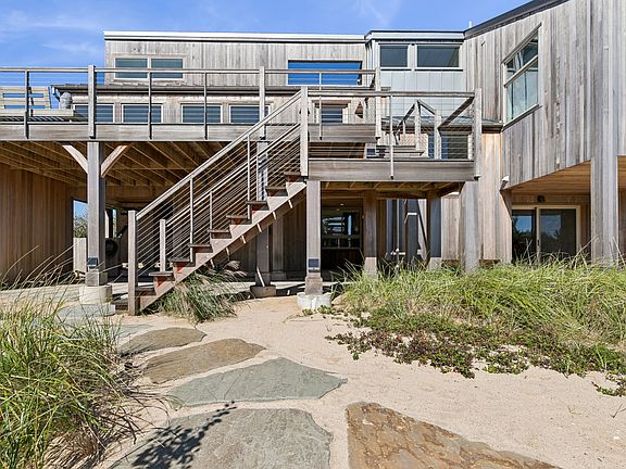 Rental Registration #: 25-1133 Experience the ultimate in waterfront living with this reimagined bayfront beach house, set on a full acre with 160 feet of pristine shoreline. Freshly renovated in 2023, this modern coastal retreat perfectly blends elegance and tranquility.Bask in panoramic water views and glowing sunsets from expansive windows and a spacious waterfront deck designed for outdoor dining and relaxation. Inside, an airy open floor plan invites effortless flow between the living, dining, and kitchen areas all enhanced by custom walnut cabinetry, rich stone and walnut countertops, and sophisticated finishes throughout.With six serene bedrooms, three-zone A/C, and both upper and lower outdoor showers, comfort meets style at every turn. Step down your private path to the sandy beach for paddle boarding, kayaking, or sailing or simply enjoy the ever-changing reflections of Napeague Harbor, renowned for its calm waters and coastal breeze.Bordered by acres of untouched preserve to the east, this property offers rare privacy and a deep connection to nature. A short drive brings you to ocean beaches, Montauk and Amagansett villages, and iconic local restaurants. You can even stroll to the historic Art Barge for classes and inspiration.