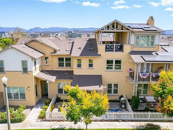 Upstairs, the luxurious primary suite offers a true retreat with a spacious walk-in closet, beautifully upgraded ensuite bathroom with tiled shower and floor, quartz countertops and dual vanities. Two additional bedrooms, a full guest bathroom with dual sinks, and an upper-level laundry room with added cabinetry provide plenty of space and convenience for daily living. The third-level covered rooftop deck boasts panoramic mountain views and is ideal for BBQs, al fresco dining—with a built-in sink, refrigerator, and counter space—or simply lounging with a built-in TV setup. Additional home features include touchless keypad entry, custom window coverings including wood shutters and blinds, double pane windows, upgraded light fixtures, downstairs framed mirror, modern hardware, direct access 2-car garage with overhead storage and ball rack, and Energy Star features integrated throughout the home. You will also have access to award-winning amenities such as baseball fields, playgrounds, a sports park, the Canyon House, Blue Hummingbird Coffeehouse, The Pond, Lagoon and Lake, Camp Out facility, resort-style pools, the farms, an arcade, state-of-the-art workout gyms, dog park, a zipline, splash pads, biking trails, NEV roads, and tennis and pickleball courts (to name a few). Additionally, it is just 15 minutes from the beach and conveniently located near the 241 freeway