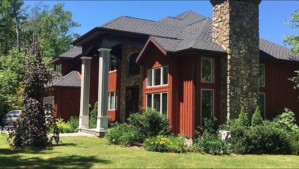 Palatial estate at the waters edge, 56 acres of boating, fishing and swimming in pristine waters. Award winning home design includes fireplace, marble, hardwood, cathedral ceilings, ornate handrails, central air, attached garages, patio pavers and huge glass facing the lake. Without question the finest house on the lake.