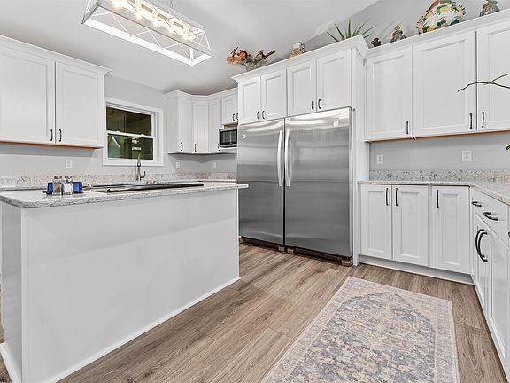 Tucked away on a private road, this gorgeous home offers the perfect blend of modern comfort and timeless detail. With 4 spacious bedrooms and 3 full baths, this property was built in 2023 and designed with both style and functionality in mind and is wheelchair accessible. Step inside to find luxury vinyl plank flooring, crown molding, and tray ceilings that add elegance to every room. The heart of the home is the gourmet kitchen, featuring stainless steel appliances, a large island, and quartz countertops—ideal for both everyday living and entertaining. Enjoy the outdoors year-round on the charming front porch or relax in the screened-in back porch of from the dining area. Parking and storage are no issue with a large 2-car attached garage plus a single-car detached garage—perfect for an extra vehicle, workshop, or hobby space. This home has it all: style, space, and a great location. Don’t miss your chance to make it yours! Call today for a private tour!
