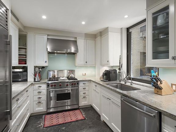 Spacious and elegant 6.5 room renovated pre-war home in prime Riverside Drive location. Direct park & river views from the open, loft like living & dining room with 9 ft ceilings. This fabulous entertaining space features a wet bar with Pietra Cardosa countertops, Sub Zero wine coolers, Brazilian walnut floors & custom wood built-in's snd decorative fireplace. Windowed chefs eat-in kitchen with granite countertops, custom cabinets, Bosch dishwasher, Sub Zero fridge, vented Wolf Range & LG washer/dryer. Master bedroom boasts direct park/river views, en-suite windowed bathroom and generous closet space. Currently configured as two bedrooms plus a den/office with custom wood pocket doors. Two zone central air conditioning. 47 unit pet friendly co-op with three units per floor, 24 hour doorman, live-in super, storage, bike storage and laundry room.
