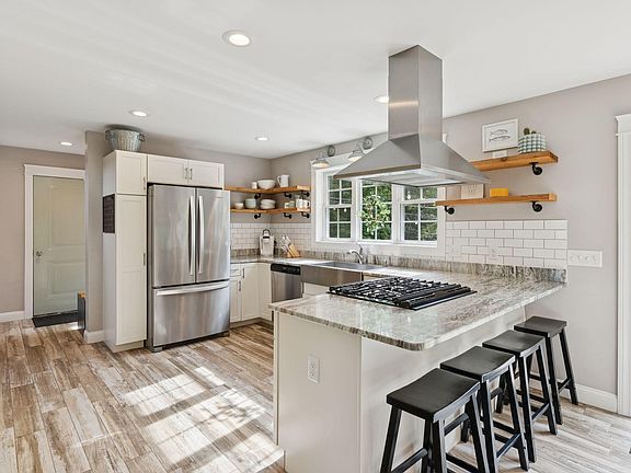 Relax on the front porch or in the backyard on the patio. The patio was made using rocks from Freeport's historic Wolfe's Neck bridge. Enjoy raised garden beds and peach trees in your backyard and blueberry bushes in your front yard.