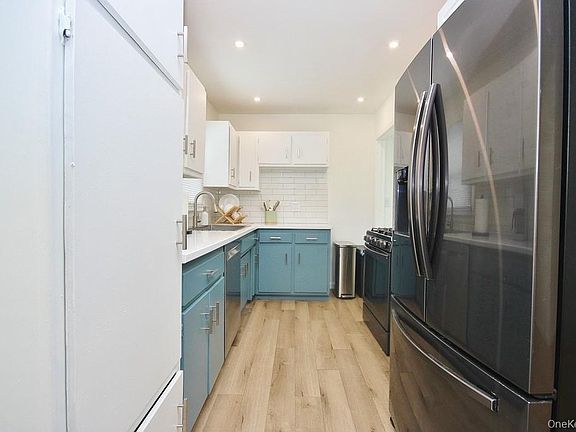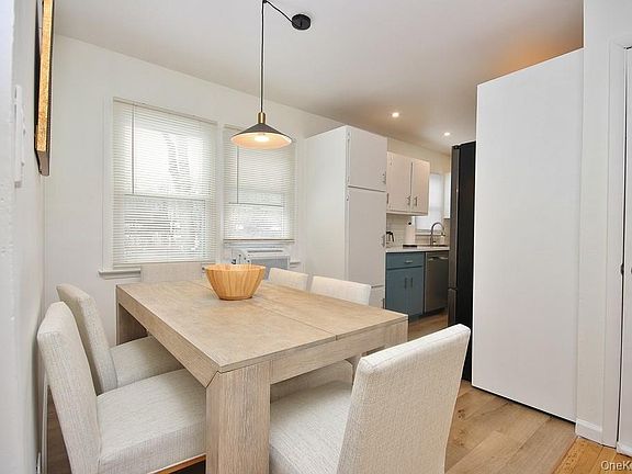 The heart of the home features an updated kitchen, boasting a brand new Solid Surface countertop, a new sink, and stylishly updated cabinets, including smart new cabinet around the stove and refrigerator. New lighting brightens the space, perfect for your morning coffee!