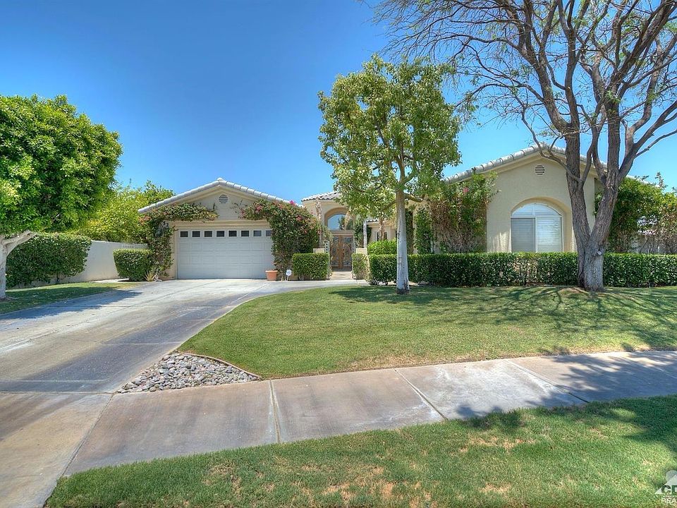 Situated in an ideal location in the heart of Rancho Mirage, this over 3000 SQFT estate is the perfect desert escape! The quaint neighborhood property is located on a quiet and private street just minutes away from excellent golf, shopping and the beauty of the desert landscape. The 4 bedroom, 3 bath house offers a wide open floorplan with a built-in wet bar in the living room making it perfect for entertaining. The space is welcoming with its high ceilings and indoor/outdoor flow. The kitchen boasts bright white cabinets and appliances, with granite counters and an eat at bar. The house offers all tile flooring, keeping it cool and clean. The large master suite looks out onto the lush backyard and pool, and offers a relaxing spa bath with a soaker tub, separate shower and his/her sinks. This single story home offers 3 garage parking spaces and a large corner lot. Make this charming property your vacation or full-time home in upscale Rancho Mirage.