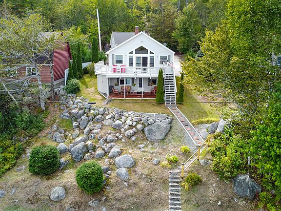 Enjoy unobstructed views of beautiful Green Lake from this well-maintained 2-bedroom, 2-bath home in Dedham. With a dock license from the state, the property offers personal lake access for boating, swimming, or relaxing on the water. Inside, the home features vaulted ceilings in the kitchen and living room, creating an airy, open feel. Large windows frame the water views, while the spacious layout includes a welcoming living area, functional kitchen, and generously sized bedrooms. The chalet-style front adds charm and character to the lake-facing side of the home. Step outside to a large wraparound deck or unwind on the lower-level patio — both offering uninterrupted views of the lake. The easy-to-maintain lot is ideal for seasonal or year-round living. A detached two-car garage includes storage space above, adding valuable utility and flexibility. Move-in ready and full of natural light, this home offers a rare opportunity to enjoy Green Lake living with comfort, convenience, and timeless appeal. Comes with fully automatic generator for additional peace of mind. Easy commute to both Ellsworth or Bangor!