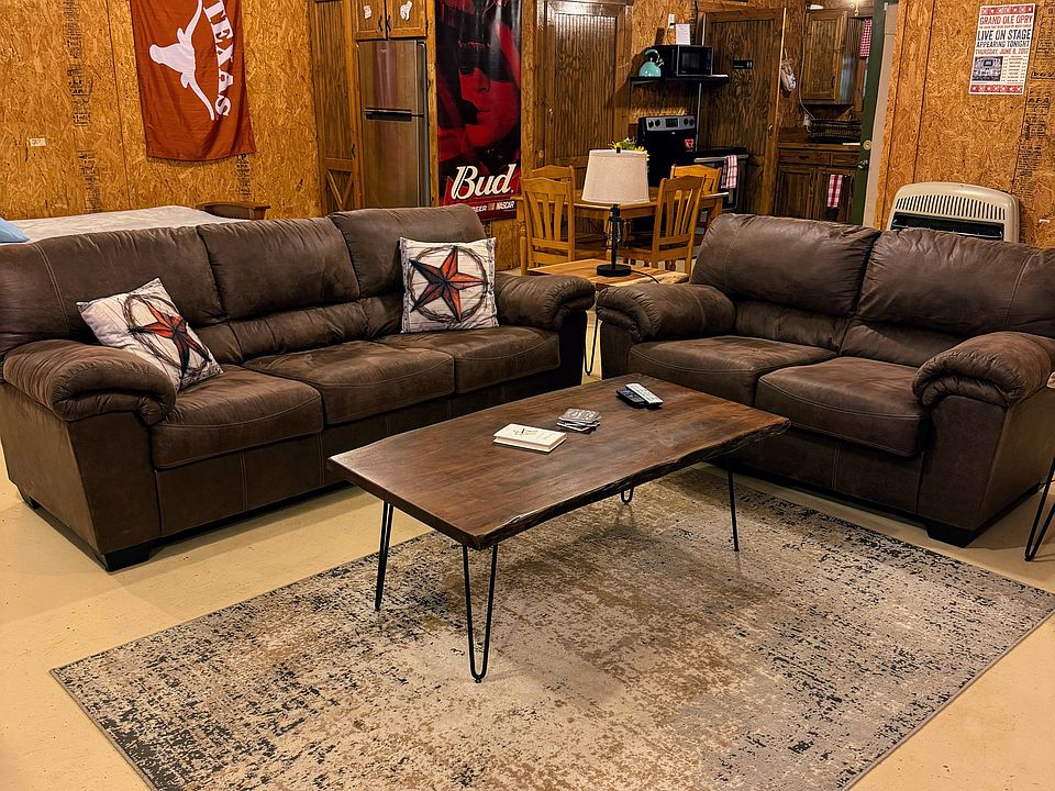 - Exterior features: Fire Pit, Foosball game, Parking is in the driveway in front of the Barn, Pool Table, Utilities included in rent