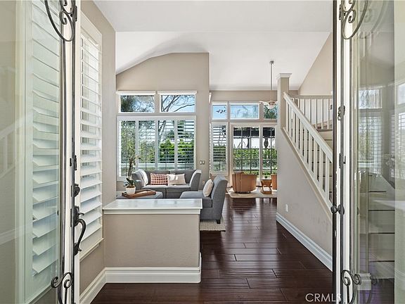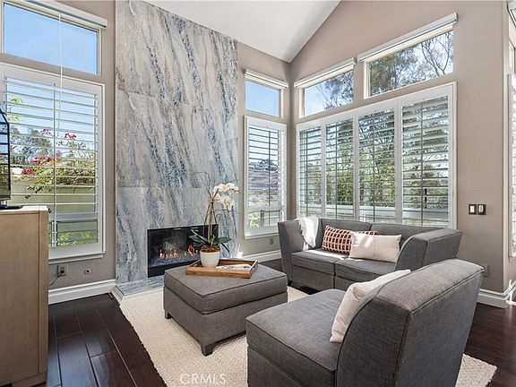 Live the good life in the coveted gated community of Siena and fall in love with this opened concept home that exceeds expectations! Upgraded THREE BEDROOMS (one downstairs with full bathroom) plus LOFT is ideally located in the community on a CORNER LOCATION and has exquisite finishes of hardwood and porcelain tiled floors, Carrara marble, and impressive windows that face a stunning view of hills, nature and gives you exceptional privacy! Right when you walk in through double glass doors, you are swept away by the soaring ceilings, gorgeous tiled to the ceiling fireplace and ceiling height windows! The kitchen is impressive and is open to living an indoor-outdoor lifestyle that is spacious, with a gorgeous Carrara marble countertop and backsplash, plus modern GE Monogram Stainless Steel appliances to include dual ovens, dishwasher, wine refrigerator, and a 5-gas burner stove! Primary bedroom has vaulted ceilings and dual doors that draw you to the deck that is perfect for coffee and views in the morning! Spa like bathroom has an extra-large shower in Carrara marble, stunning subway tile on the surrounding walls, and a stand-alone soaking tub plus shaker dual sink vanity with Carrara marble countertops! Upstairs the third spacious bedroom is en-suite with its own bathroom with marble showered/tub details and countertop! Garden oasis beckons enjoyment with a large patio under a pergola and grassy area that wraps around the corner of the home capturing hillside and nature views! Other noteworthy upgrades are newer Lenox AC, shutters, water softener and more. Gated Siena sits within coveted coastal Marina Hills and has its own pool/spa, front yard maintenance, however Siena residents also get to enjoy the main Marina Hill's clubhouse, Jr Olympic pool, tennis and pickleball courts, bocce ball and parks close by! And do not miss the ease in proximity to the Salt Creek trail to hike/bike to the Waldorf Hotel and Salt Creek beach! Don't miss out on living the good life of Siena!