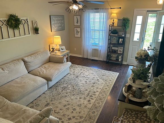 Well maintained 2BA/2.5BA townhome is conveniently located close to town yet retains the quiet rural neighborhood feel. Main level has an inviting living room, 1/2 bath with laundry, and spacious eat in kitchen with newer appliances and washed in natural light from a back balcony. Second level has primary and second bedrooms. Pull behind 1 car garage leads into a finished den/rec room.
