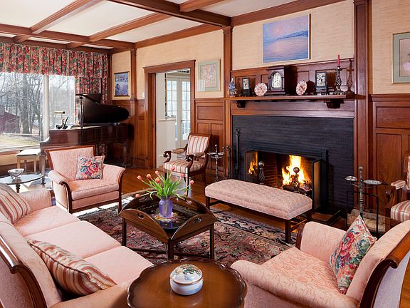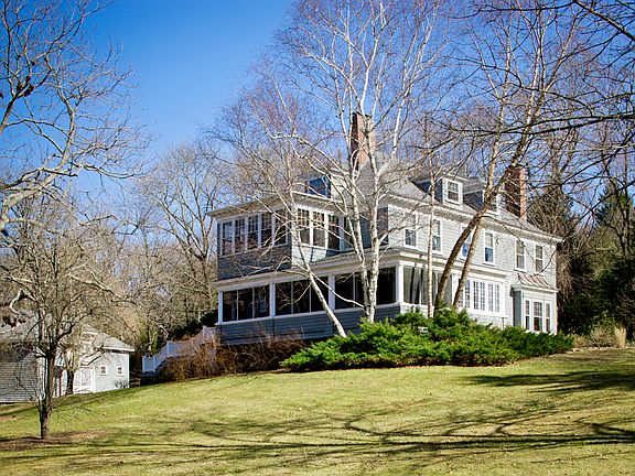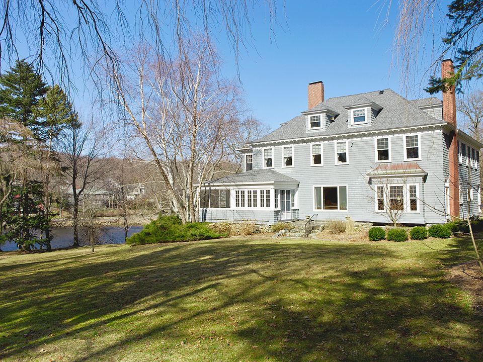 Ideally located close to town on the Ipswich River, this grand Shingle-style residence with separate carriage house is sited on 1.42 riverfront acres. Originally built c1895 as a summer residence, this classic home features high ceilings, hardwood flooring, detailed moldings, built-in shelving, French doors, and a Tamarack-paneled living room. Professionally landscaped grounds with beautiful gardens and carefully placed specimen trees gradually slope to meet the Ipswich River with approximately 320 feet of frontage. Sited on the high-point of the lot, the 4,500 square foot home offers the convenience of a renovated kitchen, first floor laundry and beautiful river views from all three stories. The sun porch along the front of the house and a cobblestone patio on the south side of the house serve as excellent outdoor living spaces and take advantage of the water views as well. Updated over the years and impeccably maintained, the house has five plus bedrooms, three full and one half baths and five fireplaces. The two-story carriage house has parking for two cars, a work shop, and original horse stalls.