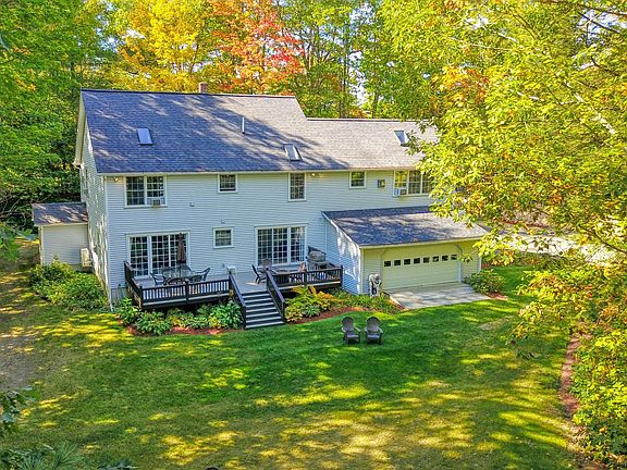 Absolutely stunning Colonial abounding with quality and elegance located in a picturesque private setting on quaint Ward Pond. The home features 2850 sq feet, beautiful hardwood floors throughout, countless rooms with views of the water, a dream kitchen with center island, granite countertops, soft-close drawers, and a pantry, front to back living room with propane heat stove and a heat pump, spacious formal dining room with sliders to an expansive back deck, primary bedroom with full bath, double closet, cathedral ceiling, skylight, and propane heat stove, second floor laundry, as well as three additional bedrooms of generous size. The grounds are gorgeous with the bountiful perennials and mixture of open space and shade trees. Ward Pond's small size lends itself well to kayak, canoe, sailing, fishing, or swimming. This home has excellent investment potential as well. It is currently used as a Vrbo home and it brings in substantial income for the current owners.