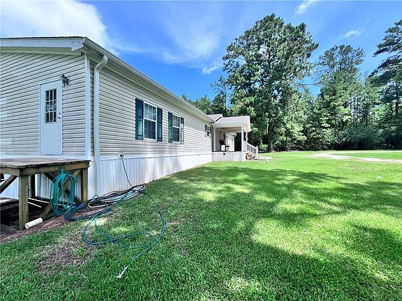 Discover this spacious 3-bedroom, 2-bathroom mobile home nestled on a serene 2.49-acre lot at the end of a quiet, rural dead-end road, offering 2,183 sq. ft. of comfortable living space. Built with 2x6 exterior walls and a max insulation package, this home is attached to a permanent foundation system with the towing hitch, wheels, and axles removed. Enjoy modern upgrades including a newer roof (2021), a 40-gallon hot water heater, and central heat and air. All appliances convey, with washer and dryer negotiable, alongside a negotiable security package and camera system. The operational jet tub, window treatments, and large, operable TV also convey, with a carpet stretching allowance offered with an acceptable offer. The property features insulated doors and windows, a front porch, back deck, side porch, and a circular driveway, ready for outdoor living. Conveniently located with school bus pickup at the cul-de-sac right in front of the home and just 2-3 miles from the volunteer fire station, this move-in-ready home combines modern comfort with tranquil rural charm.