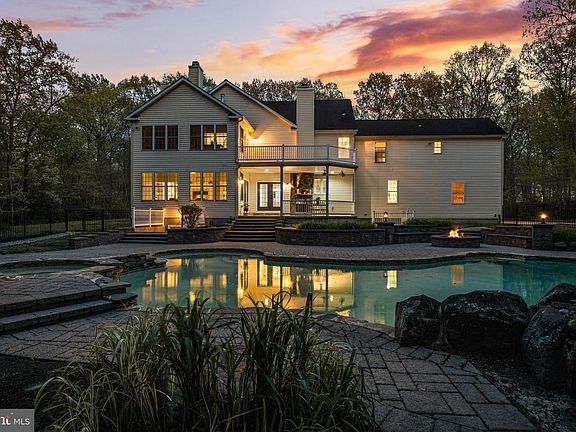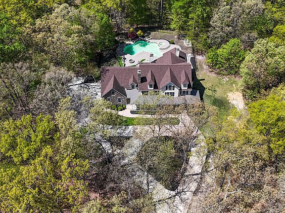 Absolutely STUNNING!! Welcome home to your secluded haven, nestled on a sprawling 13+ acre wooded estate. There are not enough words to describe this exquisite home and neighborhood!! Driving into this exclusive community you will surely be impressed by the grander and beauty of each unique custom home. Pulling into the long expansive driveway you will be greeted with a masterfully-built custom home that offers more than 5,000 square feet of extraordinary quality and artisan-crafted details throughout - soaring ceilings, custom wood trim, heart pine flooring and gourmet appliances. The property sits on nearly 14 acers of picturesque land. Walking up you will fall in love with the wrap around porch, beautiful stone work, metal roof and 3 car garage. Stepping inside you will find a massive two story foyer with a grand staircase and a great floorplan that offers several living, dining, and entertaining spaces - from the formal dining room with a fireplace, expansive family room, cozy living room, dream kitchen w/pantry, custom gourmet kitchen, sunroom with see through fireplace, wrap-around porch, and the large patio overlooking the acreage, pool and backing to trees. The owner's suite is truly exceptional -- large sitting area w/a handsome fireplace, French doors out to your private roof top porch, tray ceilings, huge walk-in closets, en-suite luxe bath -- claw foot tub, tiled shower, double-sinks, and private water closet. The 2nd floor also features 3 additional bedrooms - each with a huge closets featuring custom built-ins, 2 custom bathrooms with simple and elegant tile work and double vanities and a great bonus room. Walking up to the third floor you can find an additional bedroom and another full bathroom. Right off the kitchen or sun filled sunroom you step onto a stamped concrete patio with a fireplace to gather around and enjoy summer evenings. Right off the patio is direct access to your custom pool with a waterfall and hot tub. Slate stone surrounds the pool and expansive pavers allow for ample seating. Enjoy the nearly 14 acres of this unique property with your own hiking trails to explore the land. The basement has a bonus room, soaring ceilings, walkouts and another stunning full bathroom. Homes like this don't become available often! Don't miss your chance to own this extraordinary property that combines elegance, functionality, and entertainment in one spectacular package.