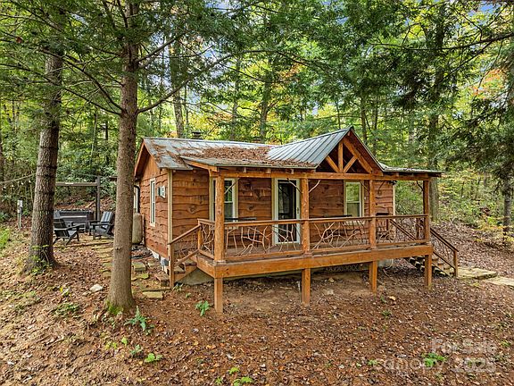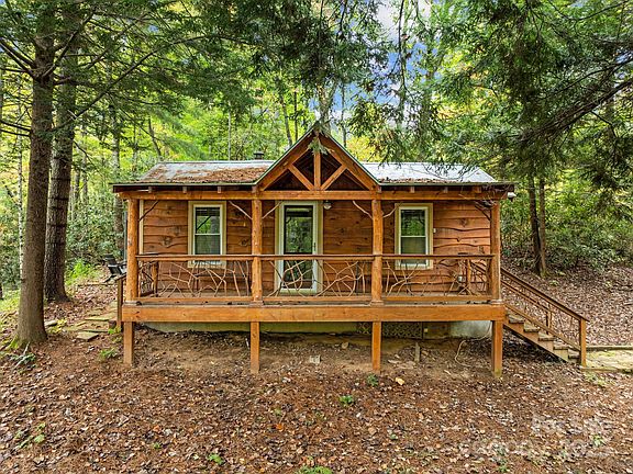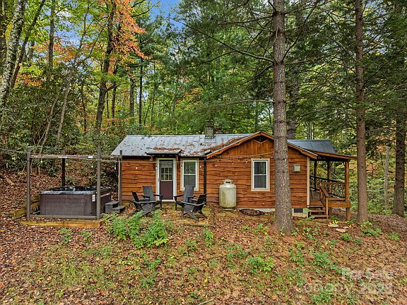 Escape to your true Appalachian retreat just minutes from downtown Black Mountain! Nestled in a private, wooded setting, this authentic mountain cabin combines rustic charm with thoughtful modern amenities. The live-edge siding and mountain laurel porch railing set the tone for a warm, welcoming space inside. Step into the cozy living room with hardwood floors and a wood-burning stove, perfect for cool mountain evenings. The eat-in kitchen features custom cabinetry, newer appliances, and beautiful hemlock floors. Two comfortable bedrooms are separated by an updated bath with a stackable washer and dryer for convenience. Step out to the stone patio and unwind in the hot tub surrounded by natural privacy. With its peaceful forest backdrop and proximity to Black Mountain’s vibrant shops and restaurants—just over a mile away—this cabin offers the ideal balance of seclusion and accessibility.
